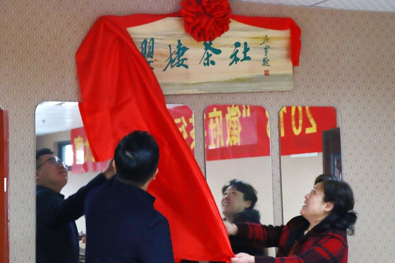首先,怀秀凤院长为活动致词,怀院长回顾了嘤栖茶社的发展历程,肯定了嘤栖茶社在技能大赛和教学方面的贡献,期望嘤栖茶社继续发光发热。崔庆华副校长和朱海涛副总经理共同为“嘤栖茶社”揭牌,匾额由安徽省文联主席吴雪题字。