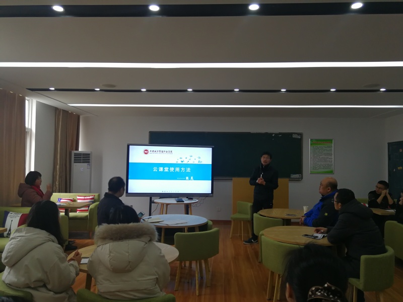 2019年2月26日下午,商贸管理学院云课堂使用技能培训会在A308举行,此次培训会邀请教务处张昊处长担任主讲教师,张处长分别围绕云课堂的“备授课”和“作业考试”等模块,为全体教师讲解了如何高效的应用智慧职教—云课堂电脑端、手机端APP进行授课,培训会由商贸管理学院院长怀秀凤主持。
