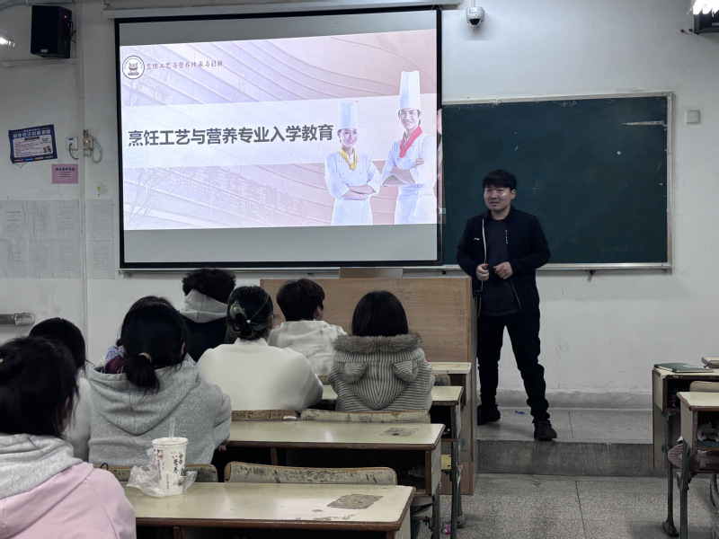 为让烹饪工艺与营养专业2025级新生尽快适应学习生活、确立学习目标,10月27日,烹饪工艺与营养专业在经开校区开展2025级烹饪工艺与营养专业新生入学教育。产业教授荣大强、教研室教师张润琛参加了此次入学教育。