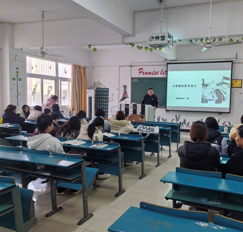 12月18日,旅游管理专业马琪副教授在A313室开展了题为“主题餐饮菜单设计”的学术讲座,24级旅游管理专业学生聆听了本次讲座。