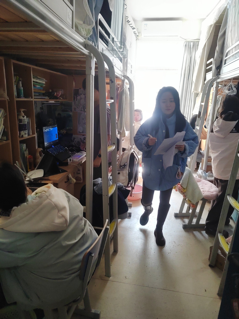 检查过程中,老师们逐栋逐层、逐间走访,针对发现的卫生不达标问题,现场督促学生立即整改;对用电不规范、杂物堆放等安全隐患问题逐一登记在《宿舍卫生安全专项检查台账》中,明确整改责任与时限,确保问题闭环管理。老师们还向同学们宣传春季防火、防盗、防诈骗、传染病预防知识,引导大家自觉遵守宿舍管理规定,共同维护安全舒适的住宿环境。